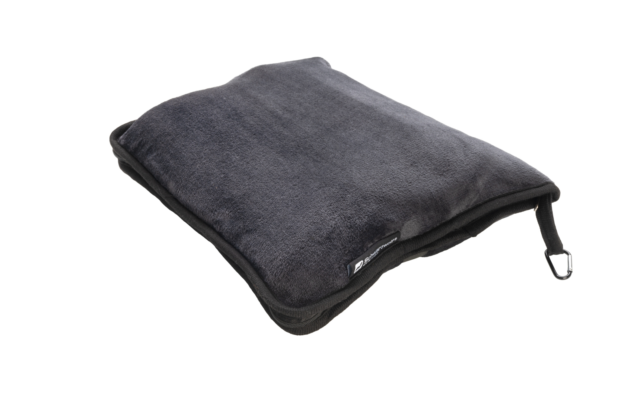 Schwarzwolf 2in1 fleecematkahuopa, jota voi käyttää peitteenä tai taittaa samasta materiaalista valmistettuun päälliseen ja muuttaa siitä mukavan tyynyn. Peite on valmistettu tummanharmaaksi ja sitä voi käyttää matkoilla tai pakata kumppaniksi retkeilyn aikana. Taitettavan peiton päällinen sisältää karabiinihaun matkatavaroihin kiinnitystä varten.