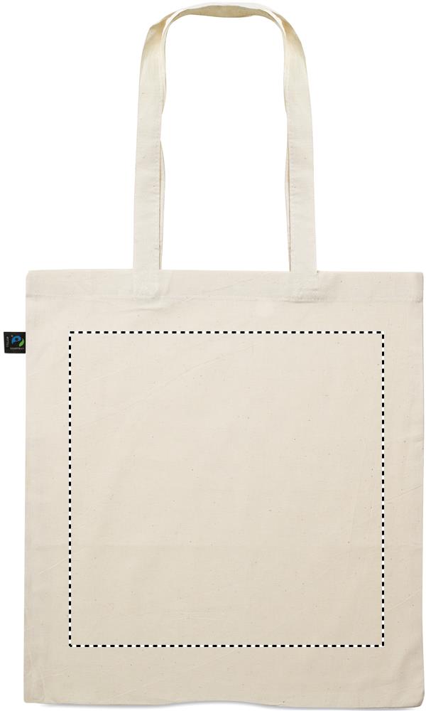 Ostoskassi pitkillä kantokahvoilla, materiaali reilun kaupan puuvillaa, 140 gr/m².