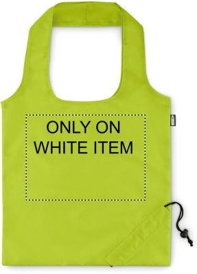 190T RPET kokoontaitettava kassi, naru kiinnitys kassin pussissa. Sublimaatiopainatus ainoastaan valkoiseen tuotteeseen.
