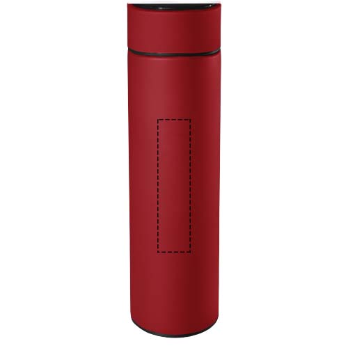 500 ml:n pullo, ruostumatonta terästä, eristetty kaksinkertaisilla seinämillä, antibakteerinen käsittely. Pullossa on lämpötila-anturi. "Touch & Light" -järjestelmän ansiosta juoman lämpötila näytetään pullon korkissa (celsiusasteina). Sopiva niin kuumille kuin kylmille juomille. Toimitetaan lieriönmuotoisessa lahjapaketissa, joka on tehty kierrätetystä paperista. Koko: Ø 47 x 225 mm. Mukana paristot: CR 2450 (3 V). Paristoa ei voi vaihtaa. Pystyy näyttämään lämpötilan jopa 20 000 kertaa.