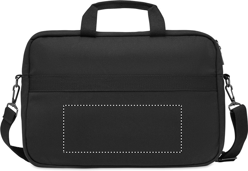 Tietokonelaukku 340 gr/m² pestyä canvaskangasta . Pehmustettu irrotettava ja säädettävä olkahihna. Selkäpuolella hihna, josta laukun saa kätevästi vetolaukun kahvaan kiinni.