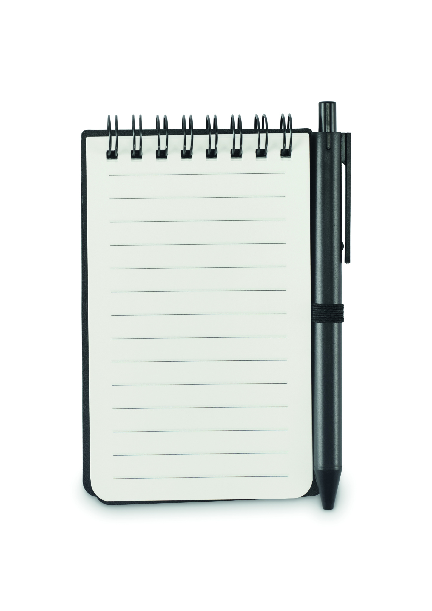Vettä hylkivä muistivihko PP-kansilla, mukana kynä. Kaksirenkainen, mineraalipaperia 120 g/m², 50 viivoitettua arkkia. Sininen muste, kuminauhakansilukko ja kynäpidike.