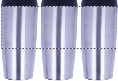 Dvigubos sienelės nerūdijančio plieno kelioninis puodelis su užsegamu PP dangteliu, kuris turi stūmimo funkciją ir yra be nuotėkio. Talpa: 350 ml. Nesandarus.