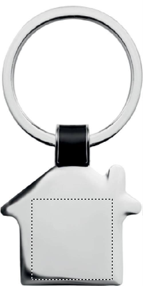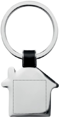 Namo formos metalinis raktų pakabukas, blizgaus nikelio apdaila.