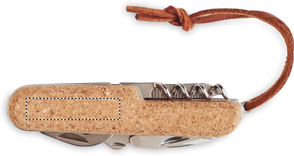 Nerūsējošā tērauda daudzfunkcionāls kabatas nazis ar korķa vāciņu un PU vadu. 7 funkcijas. Tajā ietilpst 2 attaisāmie, nazis, šķēres, skrūvgriezis ar Philips uzgaļiem, vīle un vīna nazis. Korķis ir dabisks produkts, katrai precei var būt nelielas krāsas un izmēra atšķirības, kas var ietekmēt gala apdares rezultātu.