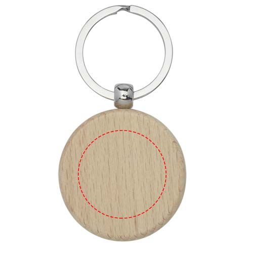 Apaļš atslēgu piekariņš, kas izgatavots no dižskābarža koka, piegādāts brūnā, pārstrādātā kraftpapīra aploksnē. Atslēgu piekariņa diametrs ir 4 cm. Paredzēts lāzergravēšanai.