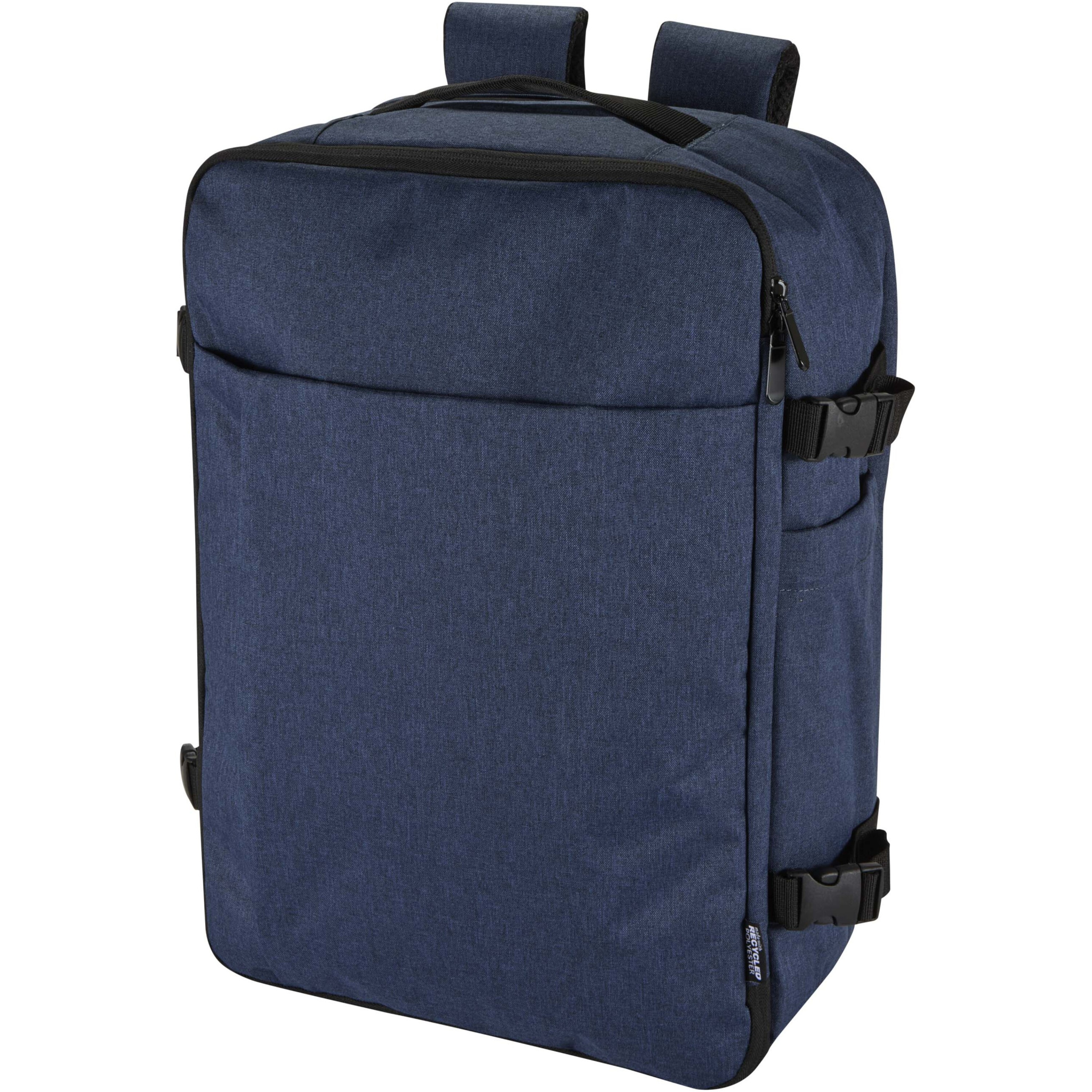 Izgatavota no GRS sertificēta pārstrādāta poliestera ar RPET oderi, Libra 17" rokas bagāžas mugursoma ir izstrādāta, lai atbilstu aviokompāniju rokas bagāžas prasībām, padarot to par ideālu ceļabiedru. Tajā ir atsevišķs klēpjdatora nodalījums ierīcēm līdz 17 collu izmēram, ietilpīga galvenā sadaļa ar elastīgām siksnām un sieta nodalījumiem mantu drošībai un kārtībai, kā arī divas lielas priekšējās kabatas ar rāvējslēdzēju ērtai piekļuvei nepieciešamajām lietām. Ērtībai un ērtībai mugursomai ir elpojošs aizmugurējais panelis, ratiņu siksna, regulējamas plecu siksnas ar krustenisku krūšu siksnu, kā arī rokturi gan augšpusē, gan sānos daudzpusīgām nēsāšanas iespējām. Šī mugursoma, kas ir piemērota komandējumiem, attālinātam darbam vai nedēļas nogales ceļojumiem, apvieno elegantu dizainu ar praktisku funkcionalitāti dzīvei kustībā.