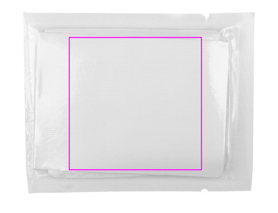 Lietus pončo salocīts maza izmēra iepakojumā (8,5 x 6 cm). Mēs uzdrukājam jūsu logotipu uz etiķetes, kas pievienota iepakojumam. Atlocītā mēteļa aizmugure - 113 x 78 cm.