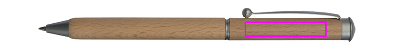 Sagriežamā mehānisma koka lodīšu pildspalva ar zilu metāla pildījumu un koka korpusu. Jūsu logotips ir iegravēts zem klipa.
