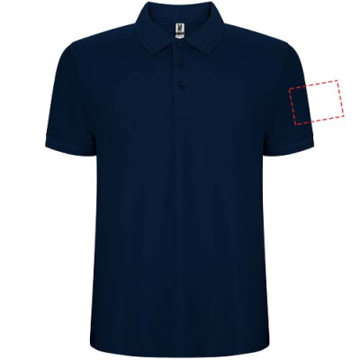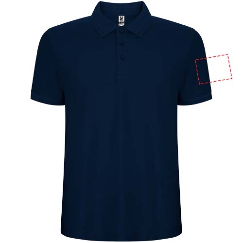 Polo krekls ar īsām piedurknēm. Apkakle un piedurkņu apmale no 1x1 rievota auduma ar detaļām. 3 pogu skava. Pastiprinātas pārklātas šuves apkakle. Sānu šķēlumi un izvēles kabata. Noņemama etiķete. Pretspiešanas ārstēšana.