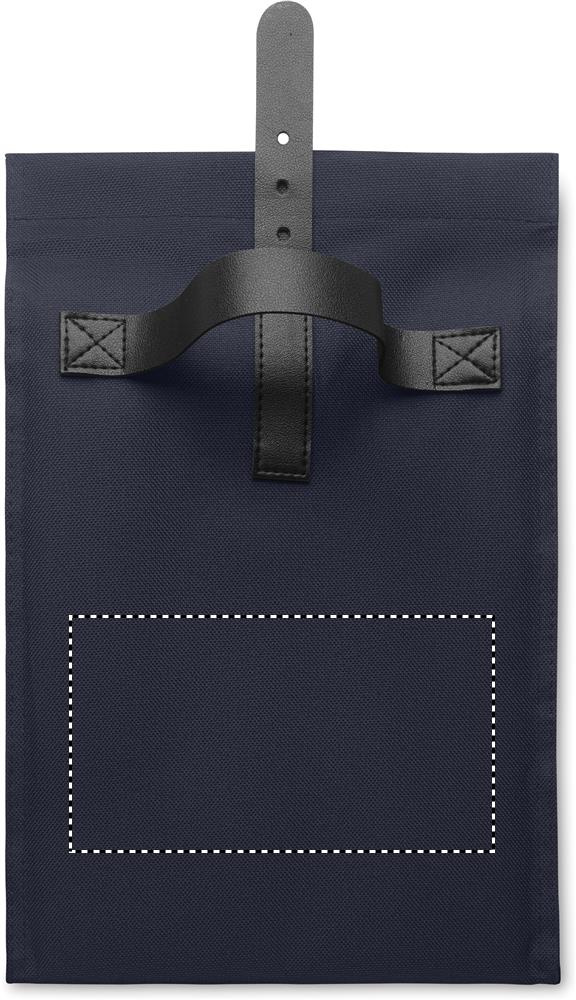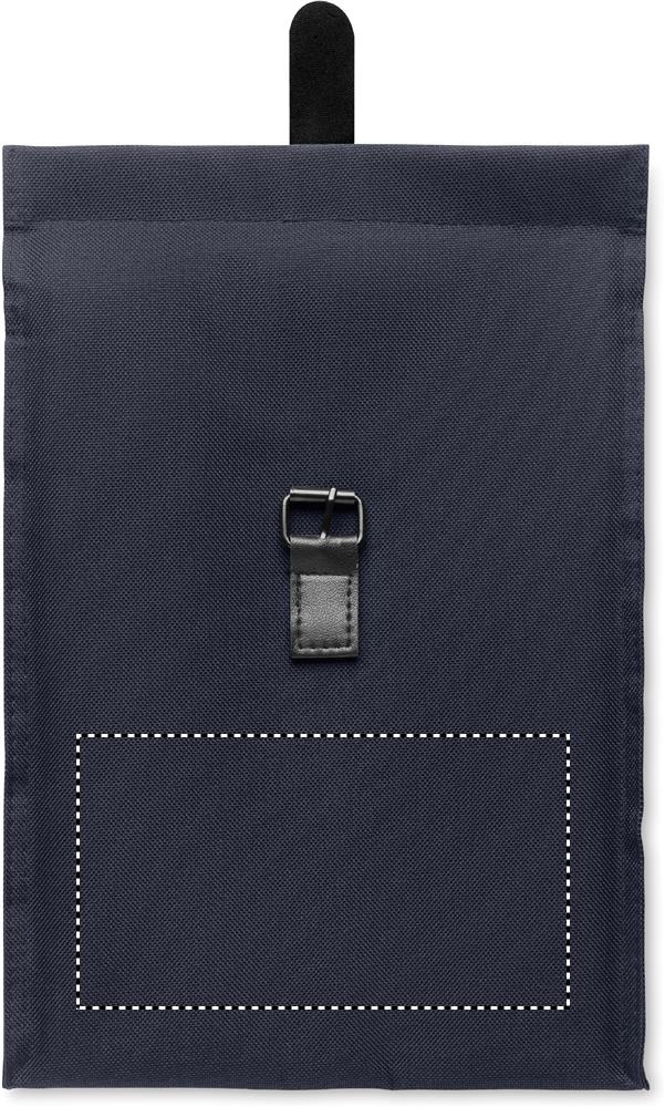 600D RPET polyester insulated roll top lunch cooler bag with PU handle and closure. Insulation: 3mm PE foam with PEVA.