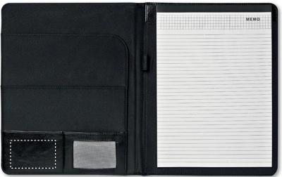 Папка для бумаг формата А4 с металлической пластинкой для логотипа. Включает блокнот на 20 листов