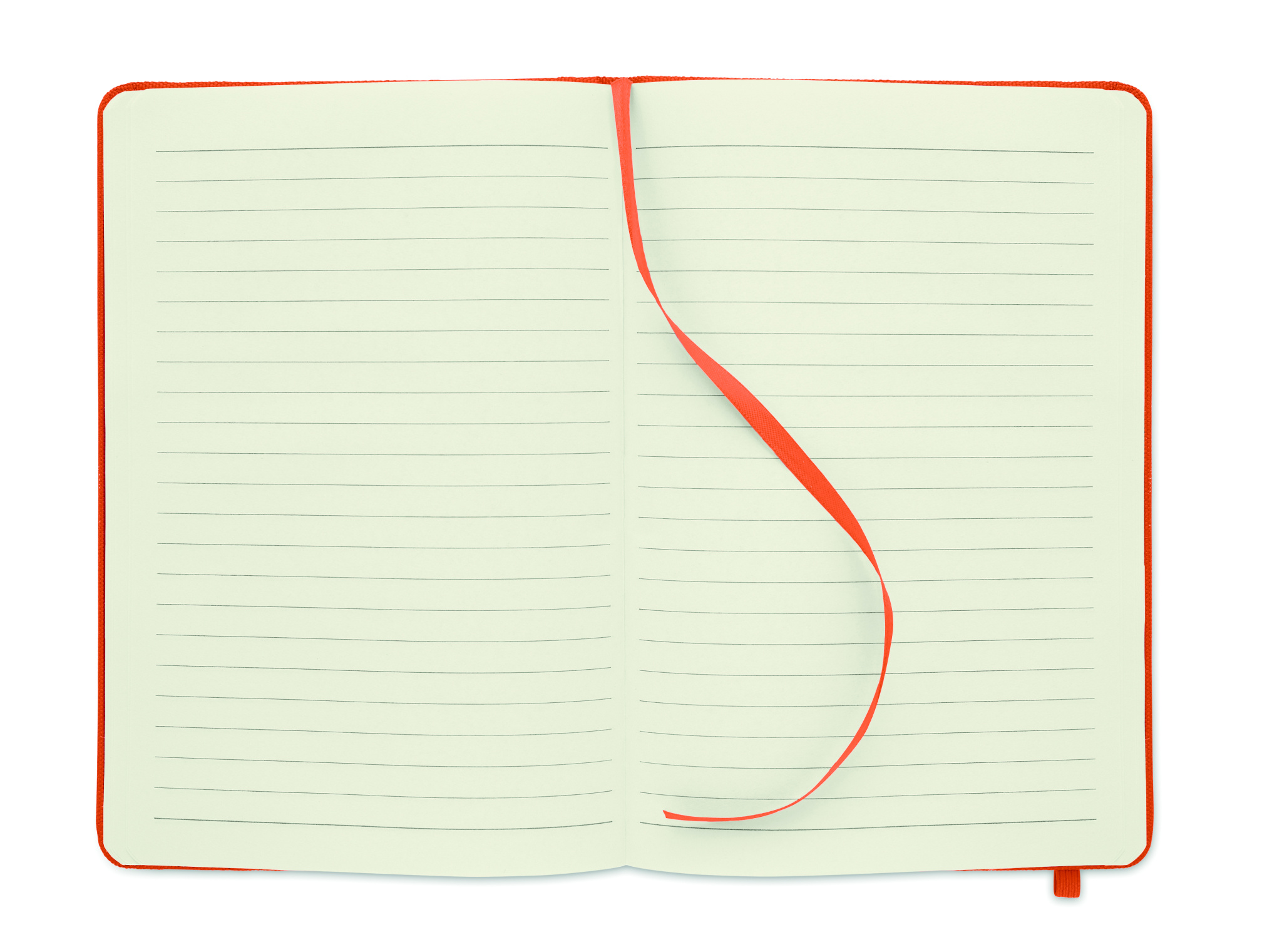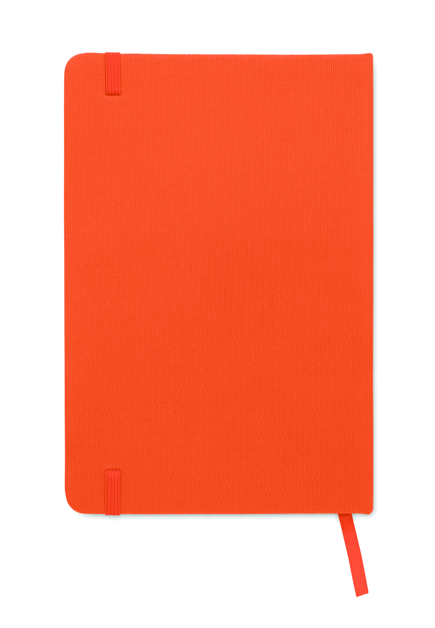 Блокнот A5 с обложкой из RPET 600D. Блок на 80 линованных страниц из переработанной бумаги с резинкой и закладкой.
