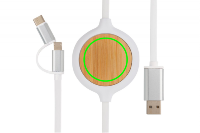 Уникальный дизайн бамбукового кабеля для зарядки 3 в 1 со встроенным беспроводным зарядным устройством 5 Вт. Кабель длиной 100 см изготовлен из материала TPE без ПВХ. С разъемом типа C и двухсторонним разъемом для устройств IOS и Android, которым требуется micro USB. Со встроенным беспроводным зарядным устройством 5 Вт для зарядки вашего устройства, просто поместив его на поверхность для зарядки. Вход: 5 В/2 А. 9 В/2 А. Беспроводной выход: 5 В/1 А, 9 В/1,1 А. Выход кабеля макс. 5 В/1 А.