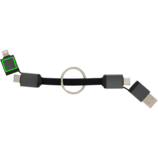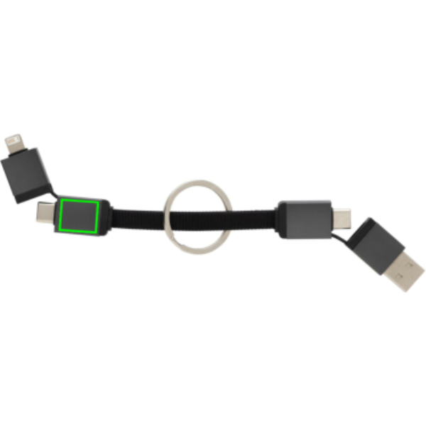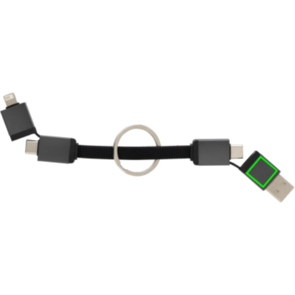 Лого трейд бизнес-подарки фото: Кабель для быстрой зарядки 4 в 1 из переработанного алюминия мощностью 60 Вт