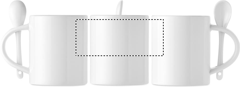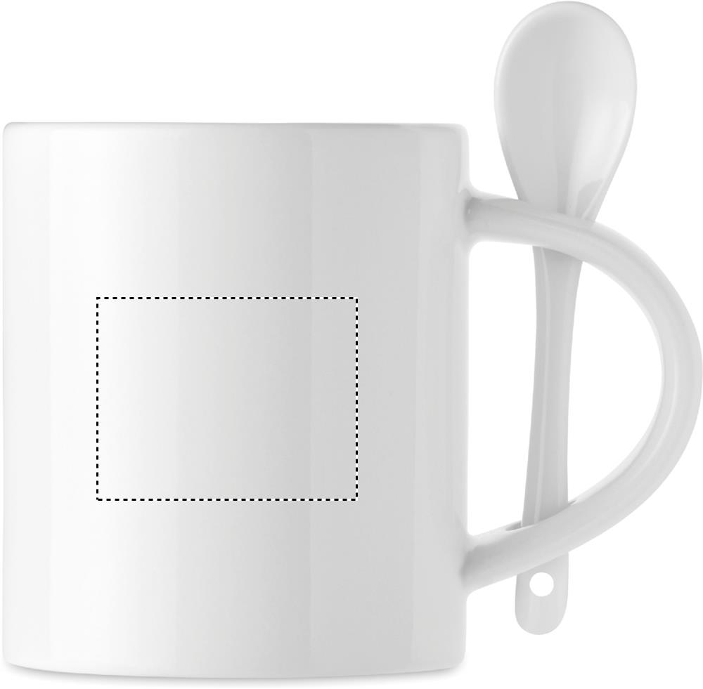 Керамическая кружка и ложка со специальным покрытием для сублимационной печати. Ложка крепится в ручке кружки. Объем: 300 мл.
