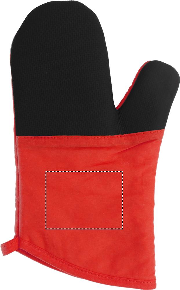 Удобная кухонная рукавица из хлопка с прорезиненной внутренней стороной.