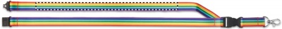 Ланьярд радужной расцветки из RPET с металлическим карабином и съемной пряжкой.