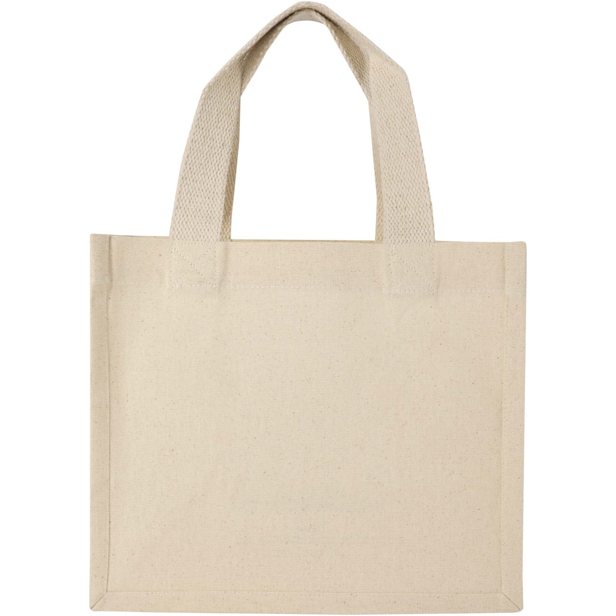 ПродукцияПосуда для питья Мини эко-сумка Odessa с клинчиком, изготовленная из переработанного хлопка, сертифицированного согласно GRS, плотностью 220 г/м², объемом 9 л