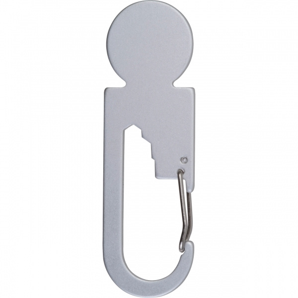 Мультитул из алюминия с механизмом разблокировки тележки для покупок, тремя шестигранными ключами разных размеров и карабином. Ваш логотип наносится на механизм разблокировки тележки с помощью лазерной гравировки.