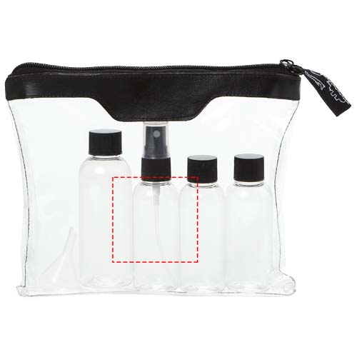 Сумка для туалетных принадлежностей, которую можно брать в самолет. Включает 2 бутылки по 50 мл, 1 бутылку на 90 мл, 1 пульверизатор и воронку. Бутылки, пульверизатор и воронка упакованы в полиэтиленовый кулек отдельно от чехла. Нанесение не предлагается на отдельные элементы набора.