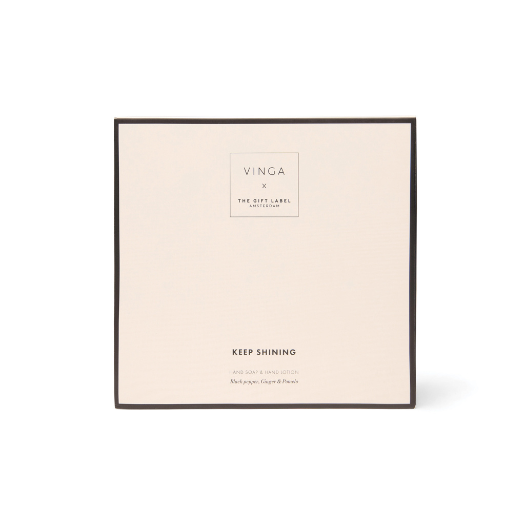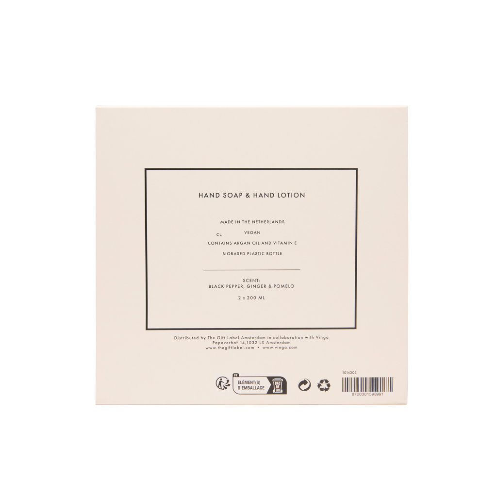 Гладкие, шелковистые руки каждый день. Позаботьтесь о своих руках с этим набором с прекрасным ароматом, включающим два флакона жидкого мыла и лосьона для рук по 200 мл. Теплый, бодрящий аромат черного перца, имбиря и помело делает кожу рук гладкой, напитанной и придает ей тонкий аромат. Это прикосновение запомнится окружающим. Элегантная подарочная коробка кремово-белого и черного цвета.