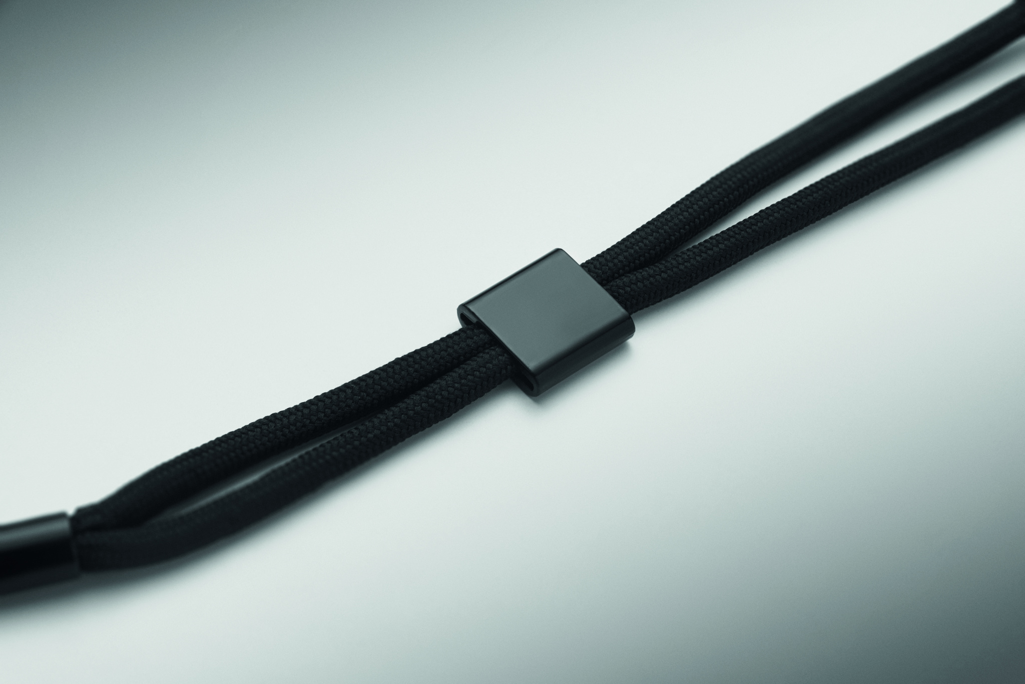 Adjustable phone cord holder wrist strap in RPET polyester. Length 25 cm.