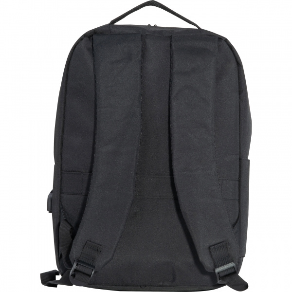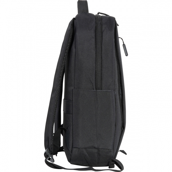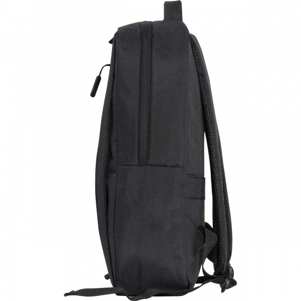 Рюкзак для ноутбука из полиэстера для 15-дюймовых ноутбуков. Имеет два передних отделения на молнии, большое основное отделение с мягкой подкладкой для ноутбука, несколько накладных карманов, мягкие плечевые ремни, ручку для переноски и ремень для крепления к чемодану на колесиках. Ваш логотип нанесён на переднее отделение.