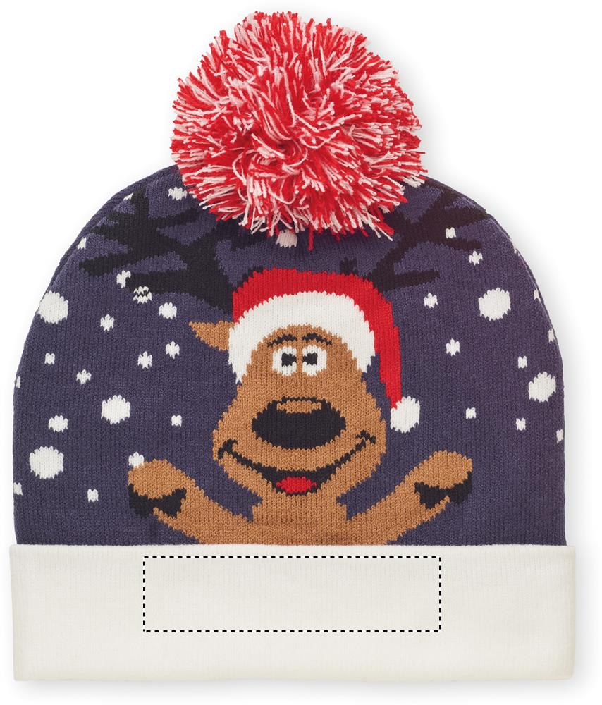 Рождественская вязаная шапочка с манжетой и помпоном из мягкого акрила.