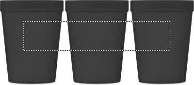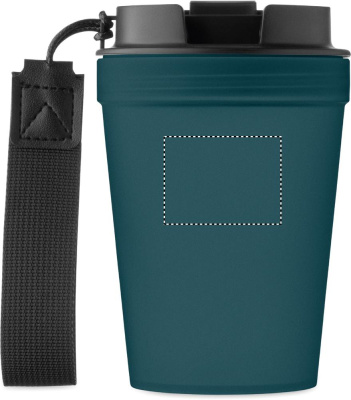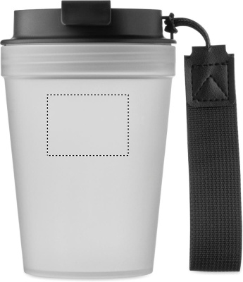 Single wall tumbler in PP, with RPET polyester strap. Leak-free. Capacity: 300 ml. As this is a single walled tumbler, heat transfer can still occur.