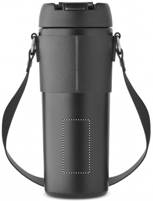Термос с двойными стенками из нержавеющей стали, крышкой из полипропилена (крышка 2 в 1 с соломинкой) и полиуретановым ремешком для переноски. Герметичен. Емкость: 700 мл.
