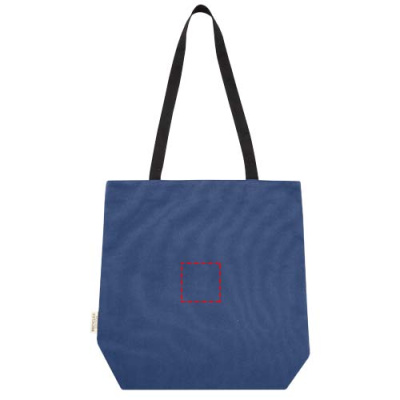Эко-сумка изготовлена из переработанного холста, сертифицированного по стандарту GRS, и имеет подкладку из переработанного ПЭТ-пластика, сертифицированного по стандарту GRS. Универсальная эко-сумка имеет мягкое отделение для ноутбука с диагональю 15 дюймов и два карманных рукава внутри для телефона, кошелька или аксессуаров, а также удобную застежку на кнопке для открытия и удобные плетеные ручки из хлопка. Декоративная металлическая пластина может придать логотипу сияние благодаря утонченному матовому покрытию.