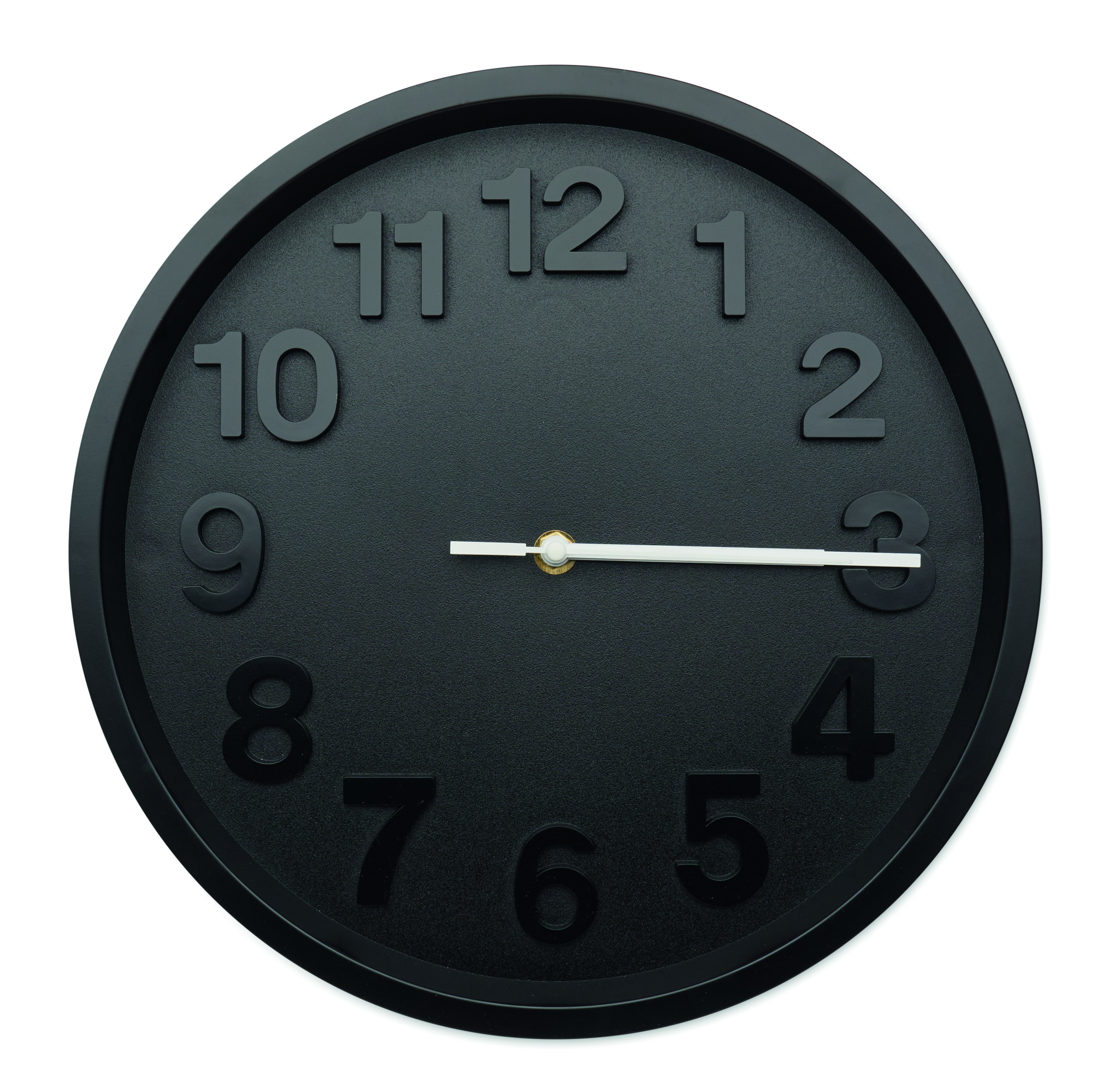 Wall clock in PP with aluminium hands and silent movement. Requires 1 AA battery (not included).