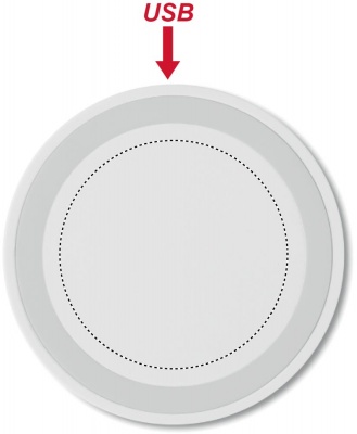 Беспроводное зарядное устройство. Подключите устройство к компьютеру и положите на него смартфон. Светится при зарядке. DC9V/1.66A (15W). Совместимо с последними моделями Android, iPhone® (8 и новее).