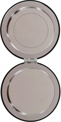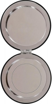 Двойное косметическое зеркальце круглой формы на магните с покрытием из полиуретана.