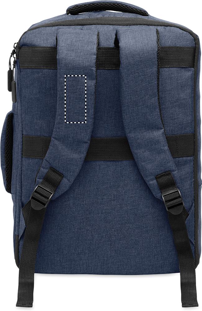 Smidig 15'' laptopryggsäck i 300D RPET med 180 graders öppning och 210D RPET-foder. Innehåller laptopfack, 2 invändiga fickor, 2 invändiga pennfickor och 2 vadderade bärhandtag. Mjukt vadderade rygg- och axelremmar. Hållare för trolleyväska.