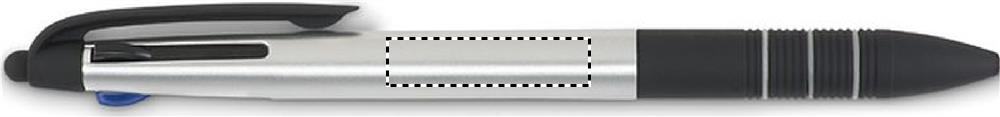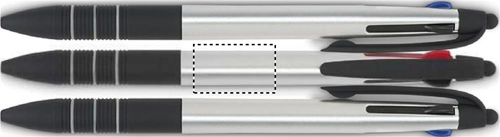 Multifunktions kulspetspenna med tre olika färger på bläcket. Röd, blå och svart. Stylus ''touch screen'' på toppen.