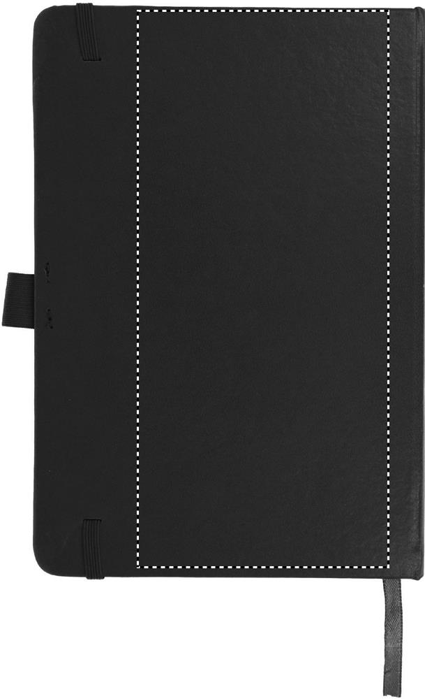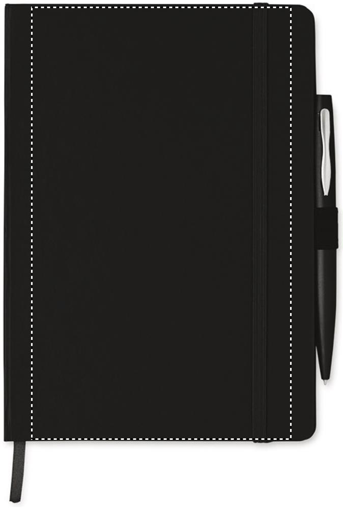 A5 inbunden anteckningsbok med hård pärm i PU, 72 blad linjerat papper, gummiögla och bokmärkesband i satin. Inklusive kulspetspenna i metall med blått bläck.