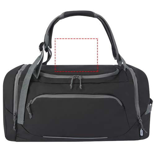Vattentålig 2-i-1 duffelryggsäck tillverkad av GRS-certifierade återvunna material, inklusive dragkedjorna. Den har ett rymligt huvudfack med U-formad öppning för enkel förvaring och åtkomst, två sidfickor med dragkedja (inklusive ett fack för skor), en framficka med dragkedja, en nätficka på baksidan och reflekterande kantband för synlighet. Denna väska kan bäras på tre olika sätt: För hand, över axeln eller som ryggsäck med vadderade och reglerbara axelremmar. De återvunna GRS-materialen inkluderar huvudtyget, fodret, väven och dragkedjorna. Kapacitet: 35 liter. PVC-fri.