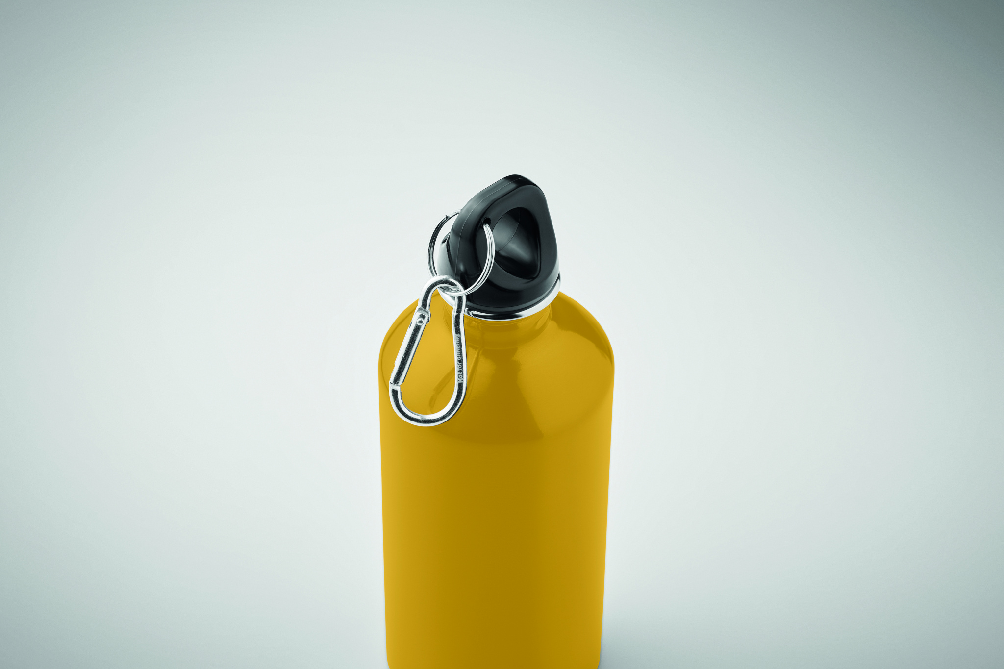 Enväggig flaska i återvunnet rostfritt stål (90% återvunnet rostfritt stål och 10% rostfritt stål) med karbinhake. 500 ml. Sublimeringstryck endast tillgängligt på vit artikel. Läckagefri.