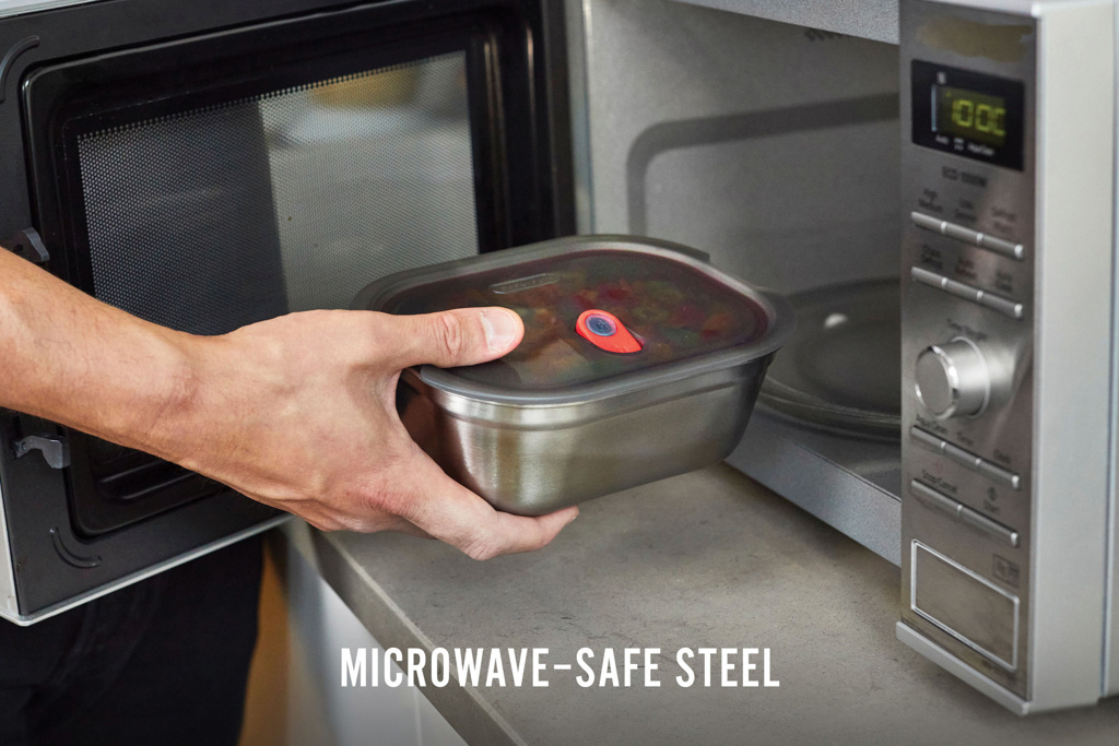 Detta set med tre matlådor, small, medium och large, i rostfritt stål är perfekt för vardagsbruk. De är mikrovågssäkra, lätta, tåliga och 100 % läckagesäkra. Varje låda har ett vakuumförseglat lock med ventil, så du kan värma maten i mikron utan att ta av locket – snabbt och utan stänk. Det halvtransparenta locket gör det enkelt att se innehållet. Behållarna tål diskmaskin, frys och ugn (locket tål inte ugn) och är enkla att rengöra tack vare avtagbara tätningar. De är stapelbara, BPA-fria och designade för att spara plats