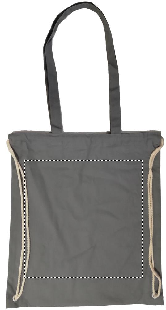 Kombinerad kasse och gymnastikpåse i bomullscanvas med långa handtag och dragsko somkan bäras som ryggsäck. Kvalité: 220 g/m2.