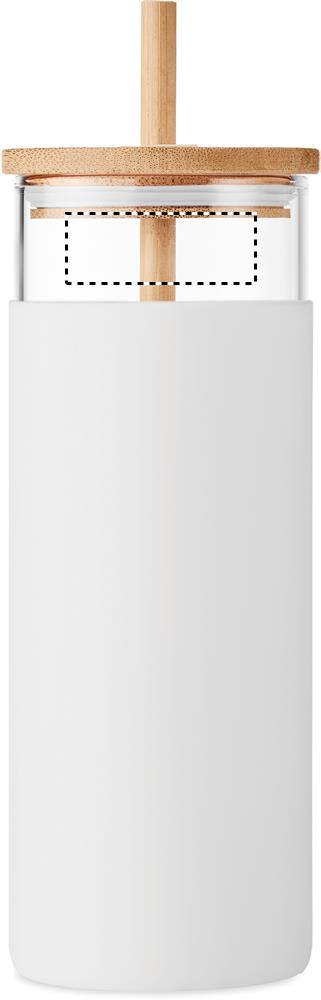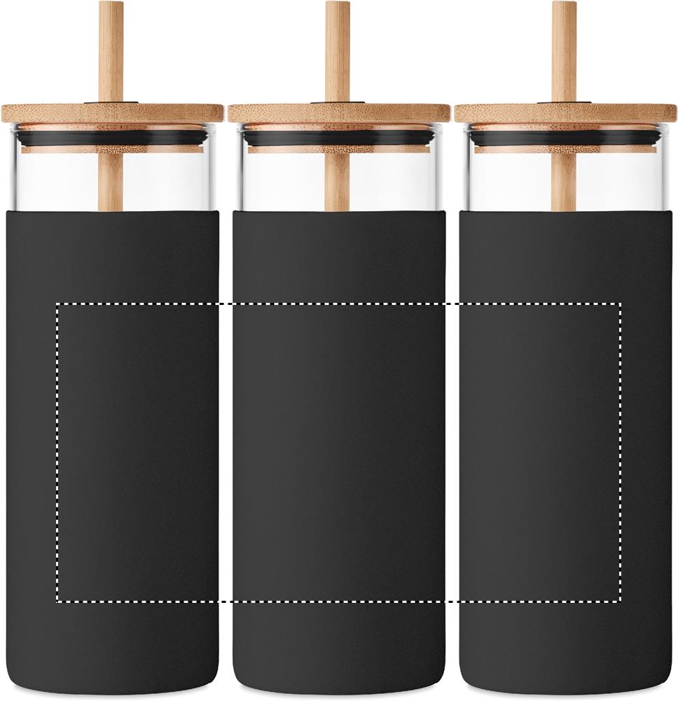 Snygg bägare/mugg i borosilikatglas med silikonfodral och lock samt sugrör i bambu. Volym: 450ml. Borosilikat är ett härdat glas som tål värme och kyla utan att spricka.
