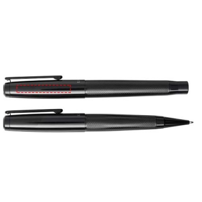 Gloss duo-penna i presentset. Presentset med kulspetspenna och rollerballpenna med övre och undre pennkropp i svart glansig finish som levereras i en Luxe presentförpackning. Kulspetspenna: 14 cm x 1,45 cm, vikt: 40 g, skrivlängd: 800 m. Rollerballpenna: 13,8 cm x 1,45 cm, vikt: 54 g, skrivlängd: 400 m. Metall.