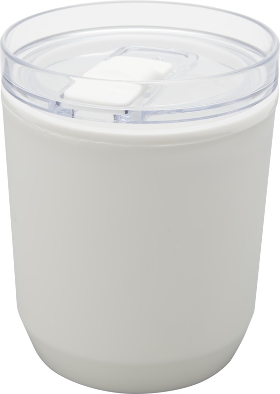 Termos med enkel design som passar de flesta kaffemaskiner och mugghållare i bilar. Dubbelväggig konstruktion med utsida av återvunnen PP-plast och insida av PP-plast. Det skjutbara locket är tillverkat av AS- och PP-plast. Volymkapacitet: 180 ml.