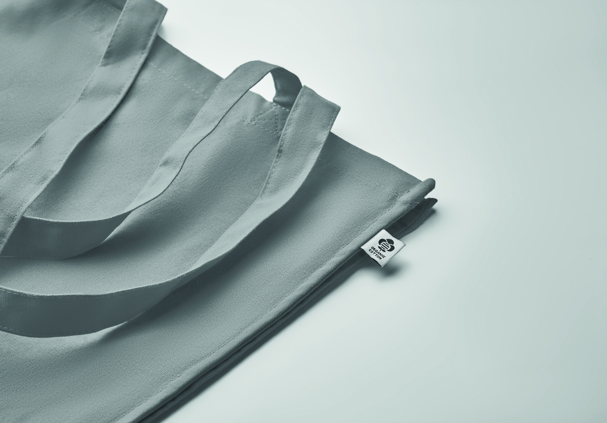 Shoppingväska i ekologisk bomull med långa handtag och kil. 220 gr/m².