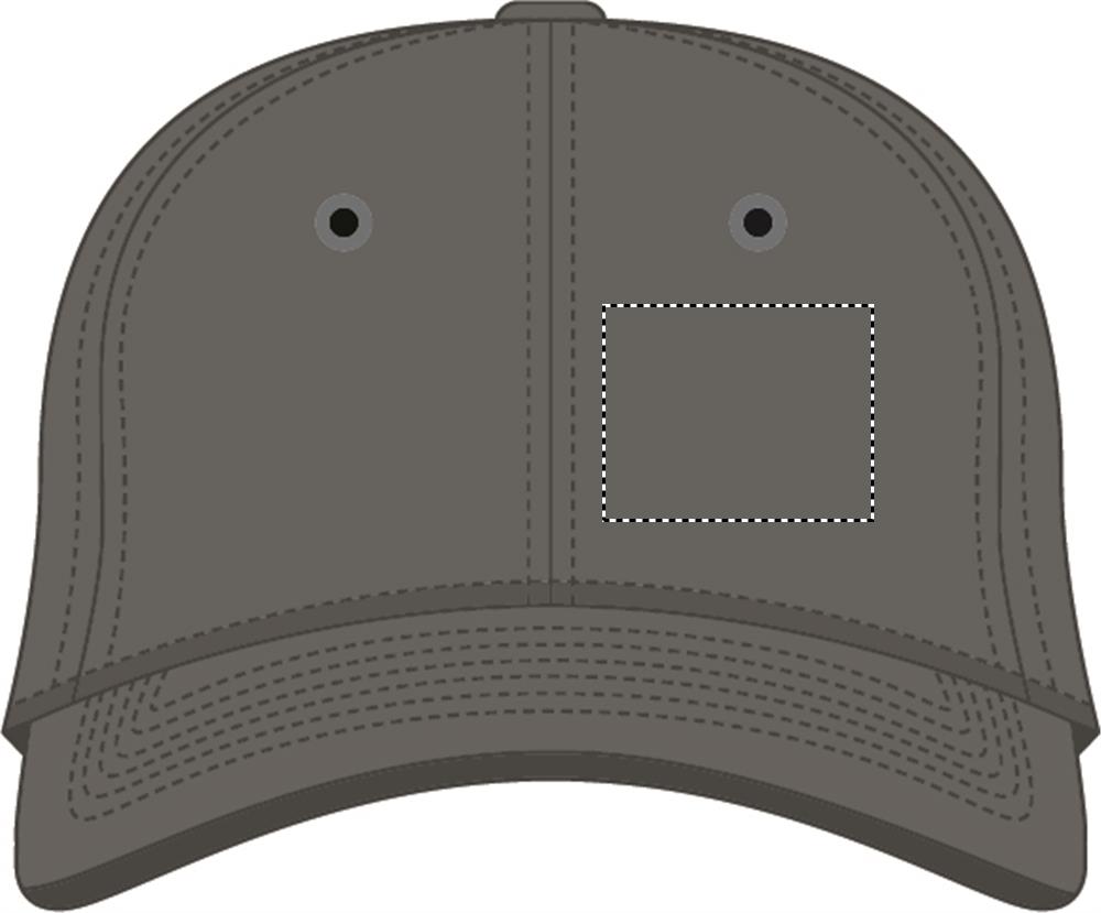 Keps med 6 paneler i borstad ''heavy cotton'' 270 gr/m2 Justerbar med kardborreband på baksidan, broderade öljetter för ventilation. Storlek: 7 1/9