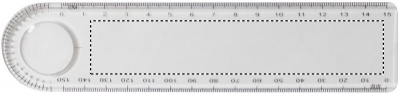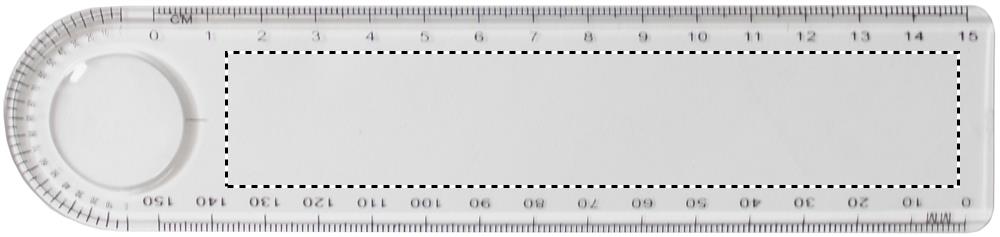 15 cm plastlinjal med förstoringsglas och gradskiva.