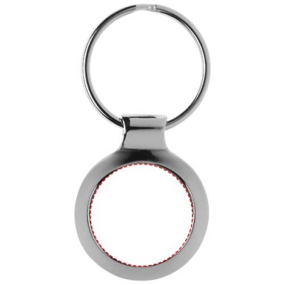 Tvådelad metallnyckelring med rund metallbricka som har högglansig finish.
