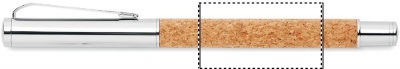 Pennset i metall med kropp i kork. Även presentasken är tillverkad i kork. Kulspetspennan har vridmekanism med blått bläck och Rollerball pennan svart bläck.